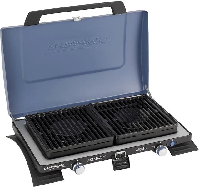 De Campingaz 400 Stove and Grill is een ideaal, compact kooktoestel voor op reis. Dankzij de 2 krachtige branders van 2200 watt kook je water binnen no time. Op deze krachtige branderkoppen kun je zowel koken als grillen dankzij de 2 bijgeleverde grillplaten. Daarnaast zit er aan de onderkant van het kooktoestel een aparte toaster, zodat je tijdens het bakken ook je brood kan toasten. Voor de ontsteking is geen lucifer of aansteker nodig, omdat dit kooktoestel is uitgevoerd met een eigen piëzo ontsteking. Het kooktoestel is voorzien van een stevig en stabiel onderstel die op iedere vlakke ondergrond te plaatsen is. Ondanks al deze eigenschappen is dit kooktoestel toch enorm compact mee te nemen als een koffertje van 14,5 bij 65,5 cm. De 400 SG van Campingaz werkt op de gasflessen R904 (brandtijd: 5 uur en 30 minuten) of R907 (brandtijd: 9 uur en 30 minuten).